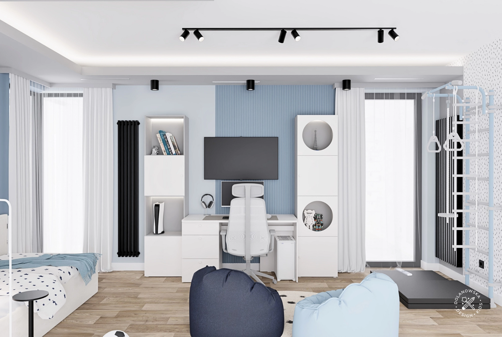 Projekt powstał w oparciu o istniejącą elektrykę, podłogi i sufity, co pozwoliło skupić się na ergonomii, estetyce i trwałych rozwiązaniach wspierających codzienną aktywność i rozwój Jacka.
